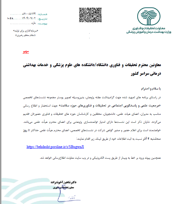 به مناسبت هفته پژوهش- مجموعه نشستهای تخصصی مرجعیت علمی و پاسخگویی اجتماعی تحقیقات و فناوریهای حوزه سلامت