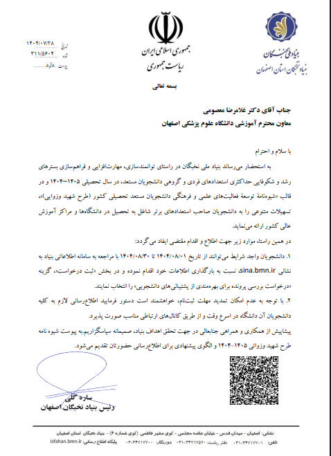 شیوه نامه توسعه فعالیت های علمی و فرهنگی دانشجویان مستعد کشور