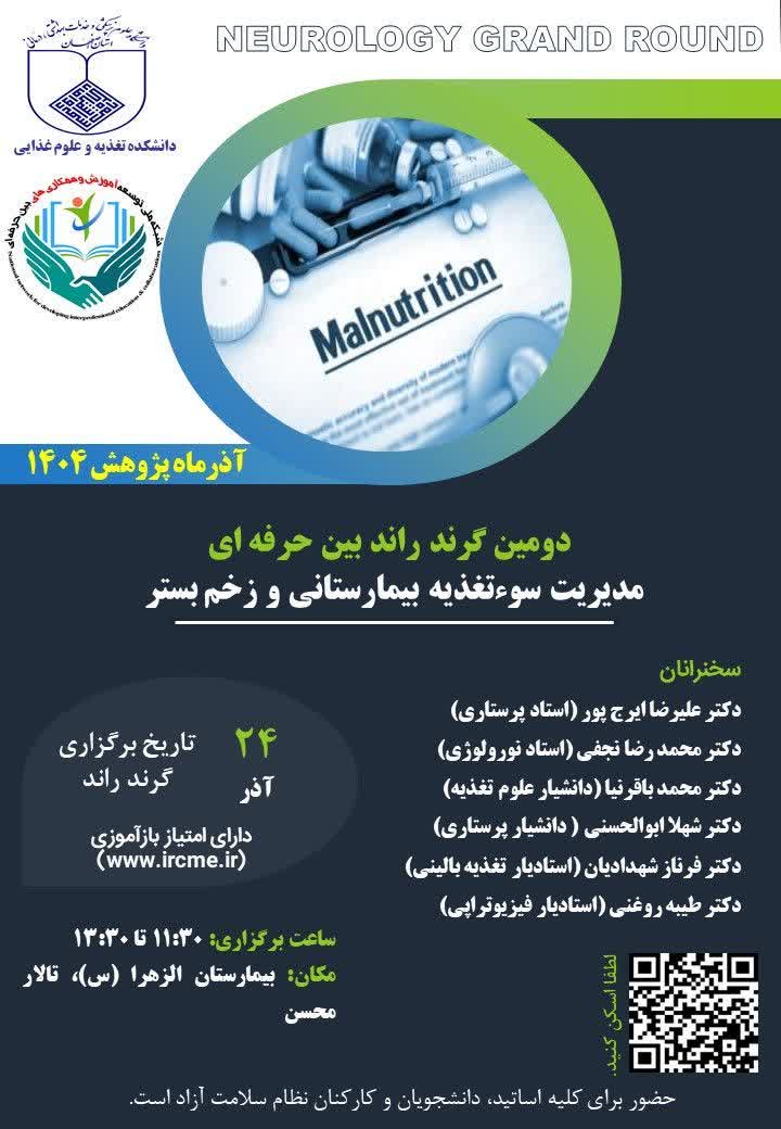 دومین گرند راند بین حرفه ای با موضوع مدیریت سوءتغذیه بیمارستانی و زخم بستر /بمناسبت آذر ماه پژوهشی